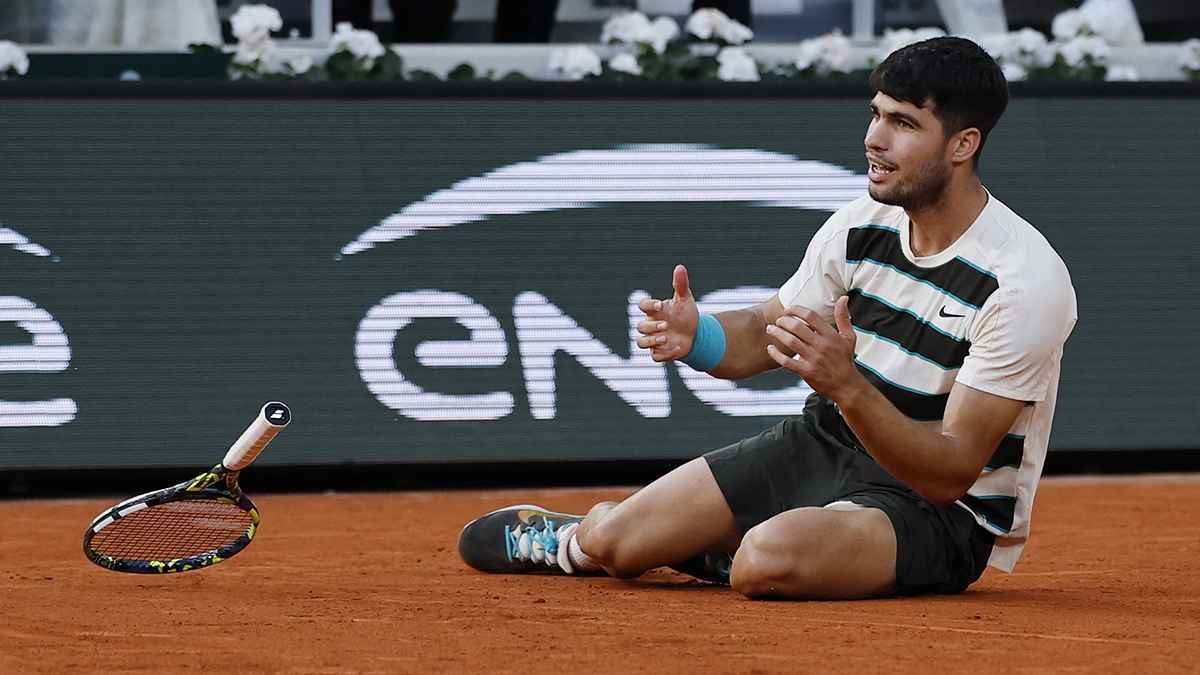 دوت رأس سطر // حقق الإسباني كارلوس ألكاراز عودة استثنائية ليتوَّج بلقب فردي الرجال في بطولة رولان غاروس للتنس، بعدما هزم الإيطالي يانيك سينر، بنتيجة 4-6، 6-7 (4)، 6-4، 7-6 (3)، 7-6 (2)، في أطول نهائي في تاريخ البطولة.