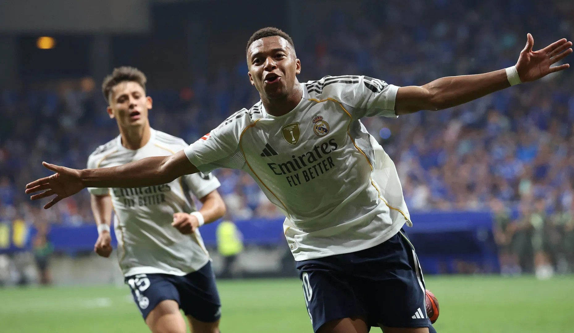 وتمكن ريال مدريد، من تسجيل الهدف الأول عن طريق لاعب الفريق الفرنسي كيليان مبابي، بعد تمريرة رائعة من جانب أردا غولر، وصلت إلى مبابي الذي أودعها داخل الشباك في الدقيقة 37 من عمر اللقاء.