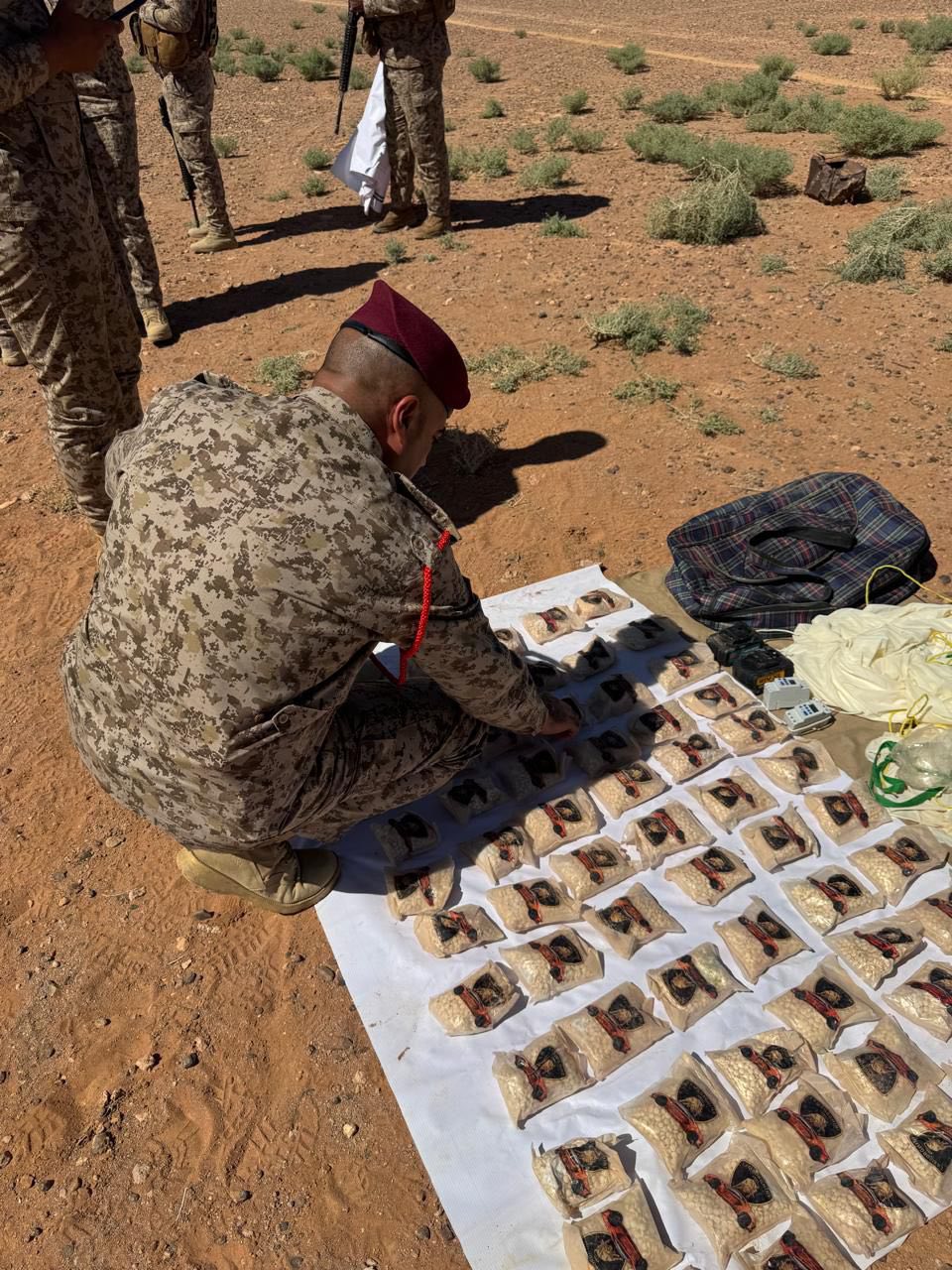 وأضافت "وبعد ورود معلومات من احد المصادر عن تهريب مخدرات من احدى الدول المجاورة عن طريق بالونات هوائية يتم إرسالها إلى العراق، محملة بكميات كبيرة من الحبوب المخدرة مربوطة بجهاز تعقب GPS، حيث تم تعقبها من قبل ابطال مفارز الاستخبارات العسكرية ثم اسقاطها في الصحراء والاستيلاء على 198 ألف حبة من مادة الكبتاغون المخدرة".
