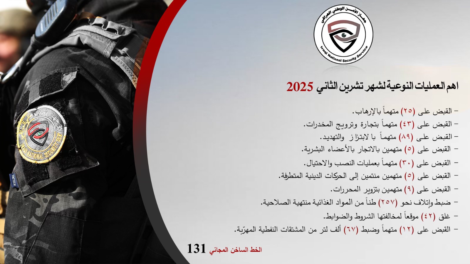 جهاز الأمن الوطني ينشر حصيلة عملياته خلال شهر تشرين الثاني
