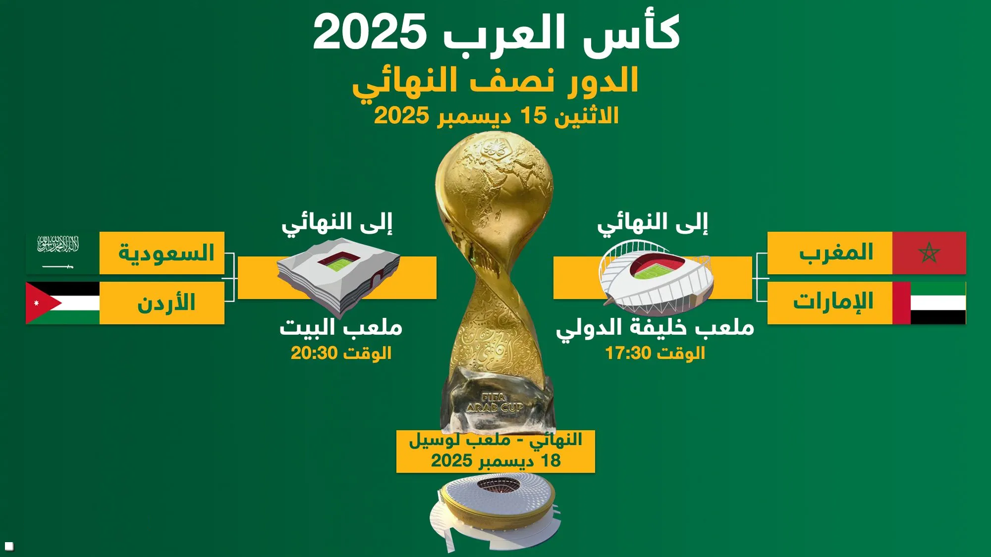 تعرف على مباريات ومواعيد نصف نهائي كأس العرب 2025